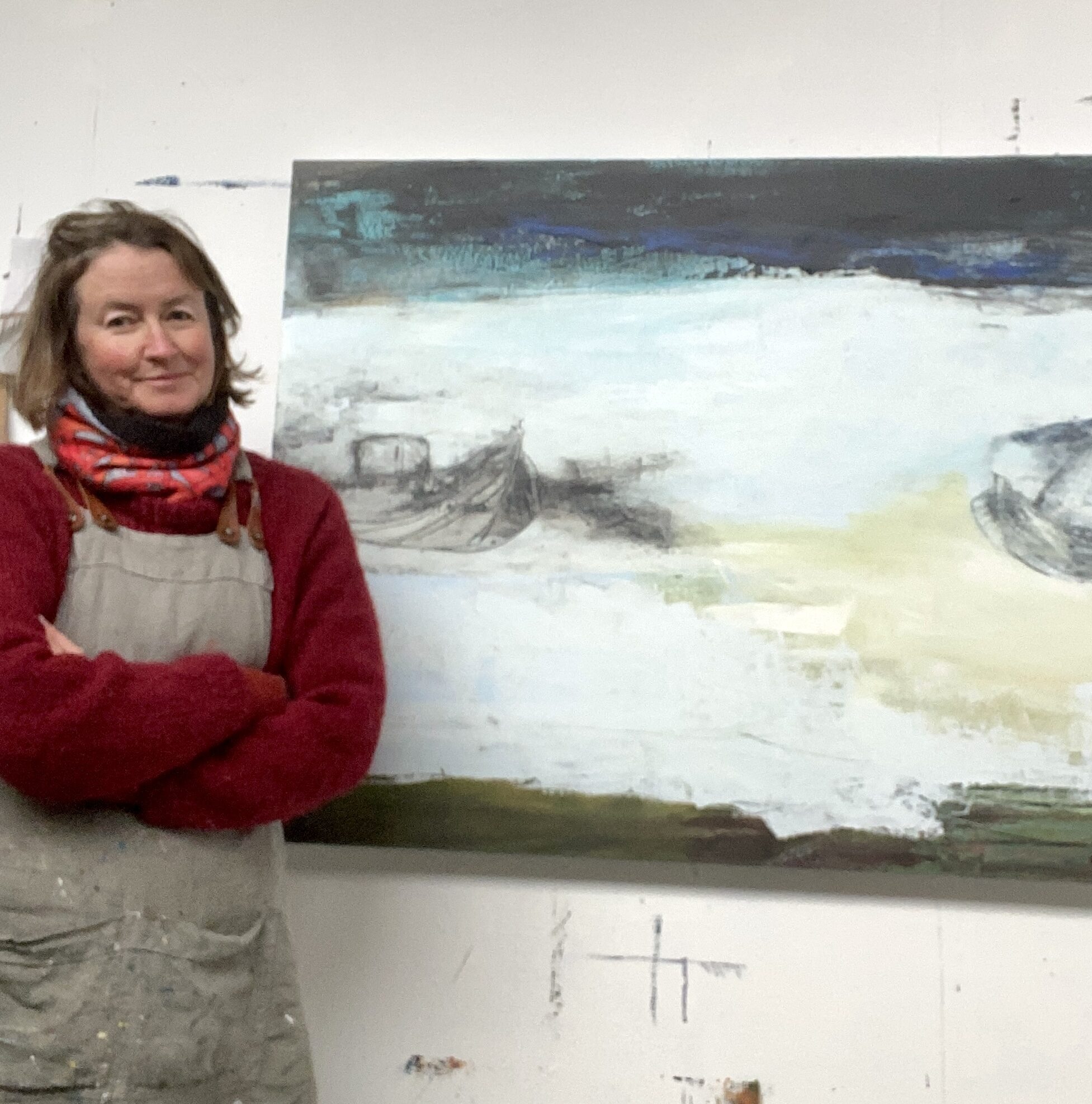 January has been really busy, so much new work underway. I’m working on a couple of different series, one almost verging on figurative! The hulking shapes of boats washed up, waiting for the tide, still soaking up my inspiration from my trip to Cornwall in October. Second series, more abstract, deep blues, big seas, little safe harbours, ghostly pale fog and mist. I’m loving the wintery colours and textures around us all, and have been taking a lot of photos – all somehow gets worked into my paintings.